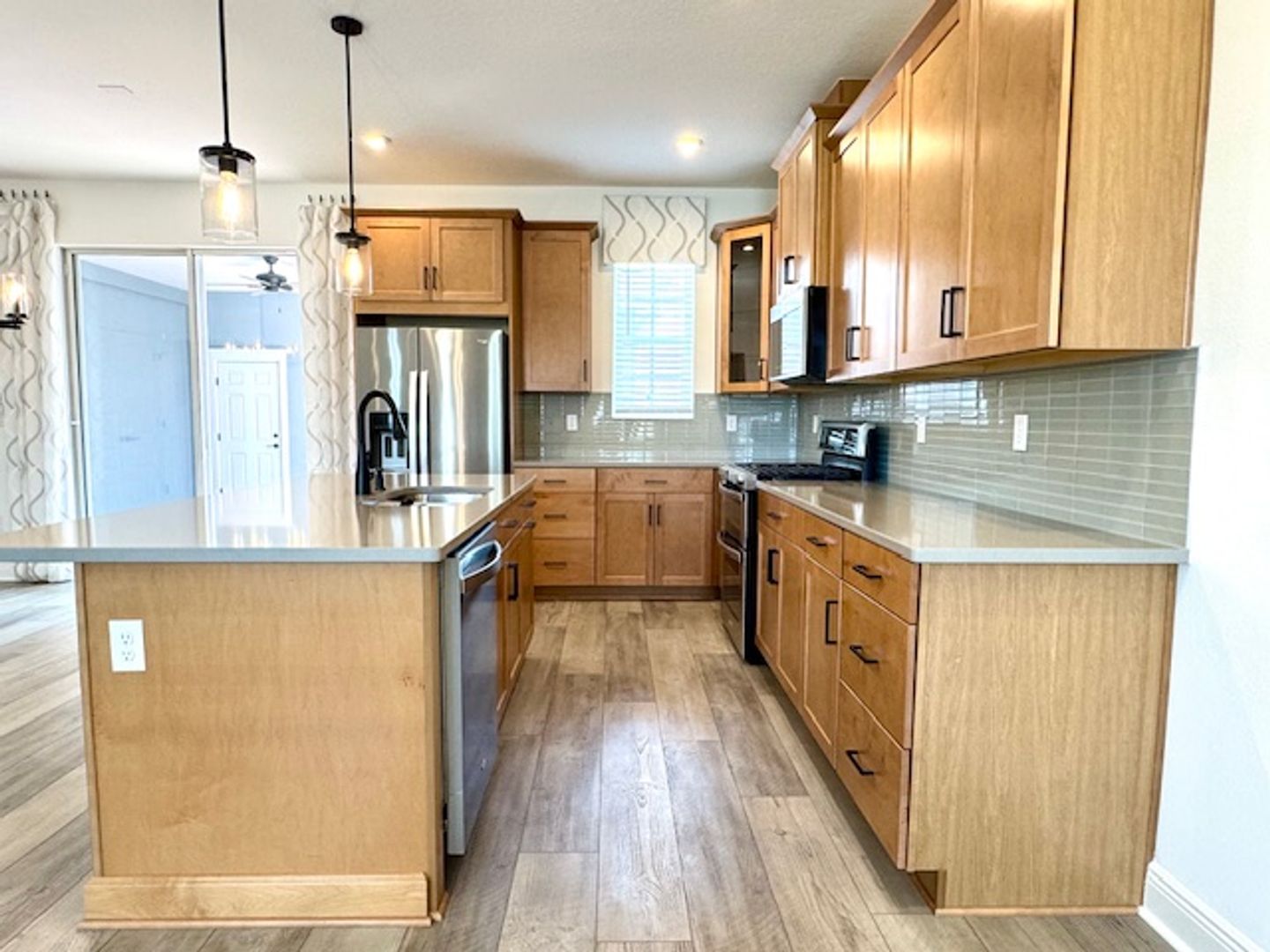 Welcome Home! Come see this pristine former model home, nestled in the popular Celebration Island Village. This beautiful, spacious 3 bedroom, 2.5 bath town home checks all of the boxes. Luxurious style, convenient location, and charming community. Beginning with the inviting covered front porch you enter the elegant open living area with laminate flooring, tv wall mount, and ceiling fan, leading to the gourmet upgraded kitchen with stainless appliances, gas double-oven, vented microwave, 42" cabinets with crown molding, pendant lighting and large island with sink. From the kitchen you have easy access through the tall sliding glass doors to the private, covered, fenced-in, courtyard with ceiling fan. Great for relaxing or entertaining guests. It also serves as a covered walkway from the two car garage in the rear of the home with automatic garage door opener, EV CHARGING OUTLET, and epoxy painted flooring. Also in the great room is the half bathroom and a double door closet with custom shelving. Moving to the top of the stairs you have the laundry room with front loading washer/dryer with pedestals and cabinet storage. To your left is the large primary bedroom including two separate large walk-in custom California closets for that added touch of organization and luxury. Then you have the primary bathroom with dual sinks, frameless glass shower, and separate toilet room. Back to the top of the stairs are the other two large bedrooms joined by the Jack and Jill full bathroom with dual sinks and tub / shower. The home is conveniently located right next to Island Village Elementary School and offers easy access to Celebration’s array of parks, shops, Publix grocery store, gas station, restaurants, major highways ( I-4 & 417), community events, and all the magic of nearby Disney attractions. Enjoy Island Village amenities including a Zero entry pool with lounge areas. Fitness Center with app-enabled indoor fitness station, and resort-style clubhouse with screened in lanai.