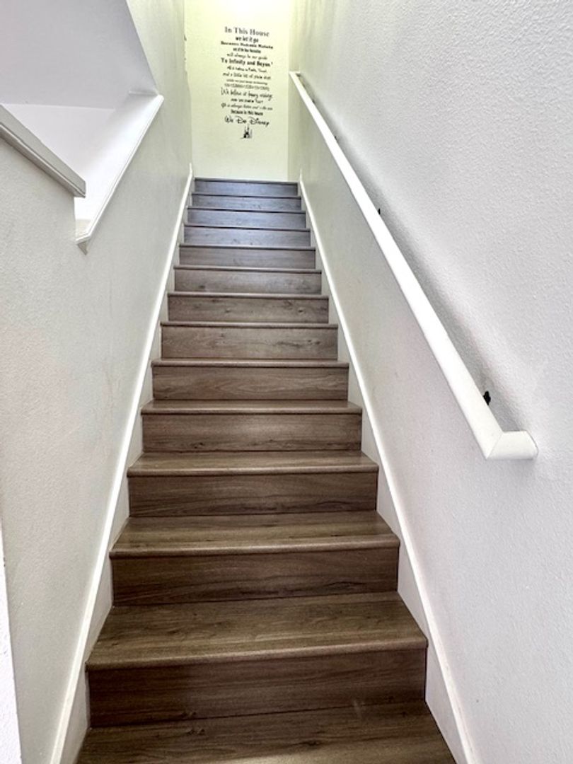 Modern Flooring: Durable ceramic tile throughout the first floor with stylish laminate or carpet upstairs.
